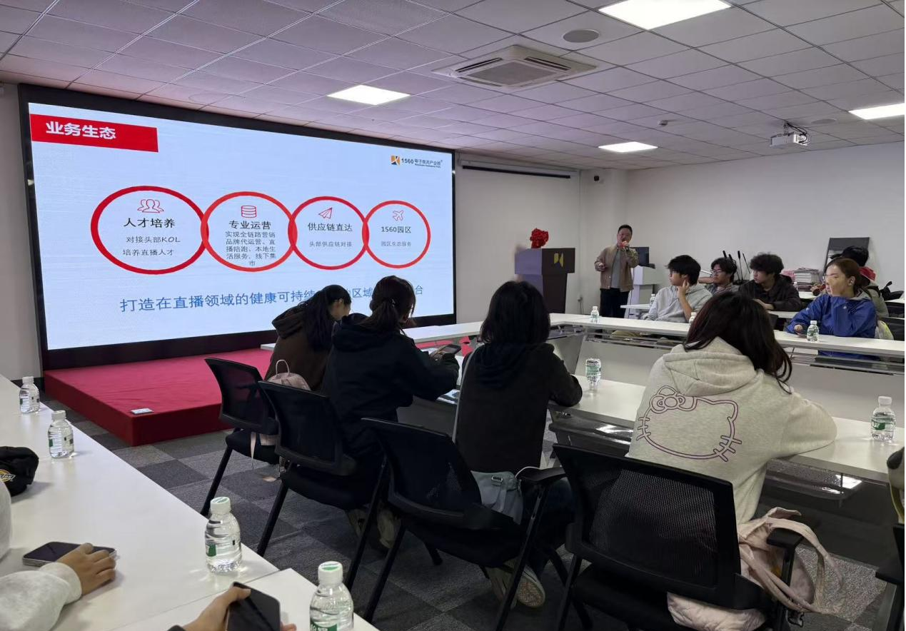 1560电子商务产业园是上海颇具影响力的电子商务产业集聚区。活动伊始,产业园负责人对师生们的到来表示了热烈欢迎,并详细介绍了园区的发展历程、业务板块及运营模式。通过介绍,同学们对电商产业的生态系统和未来发展方向有了宏观的认识。